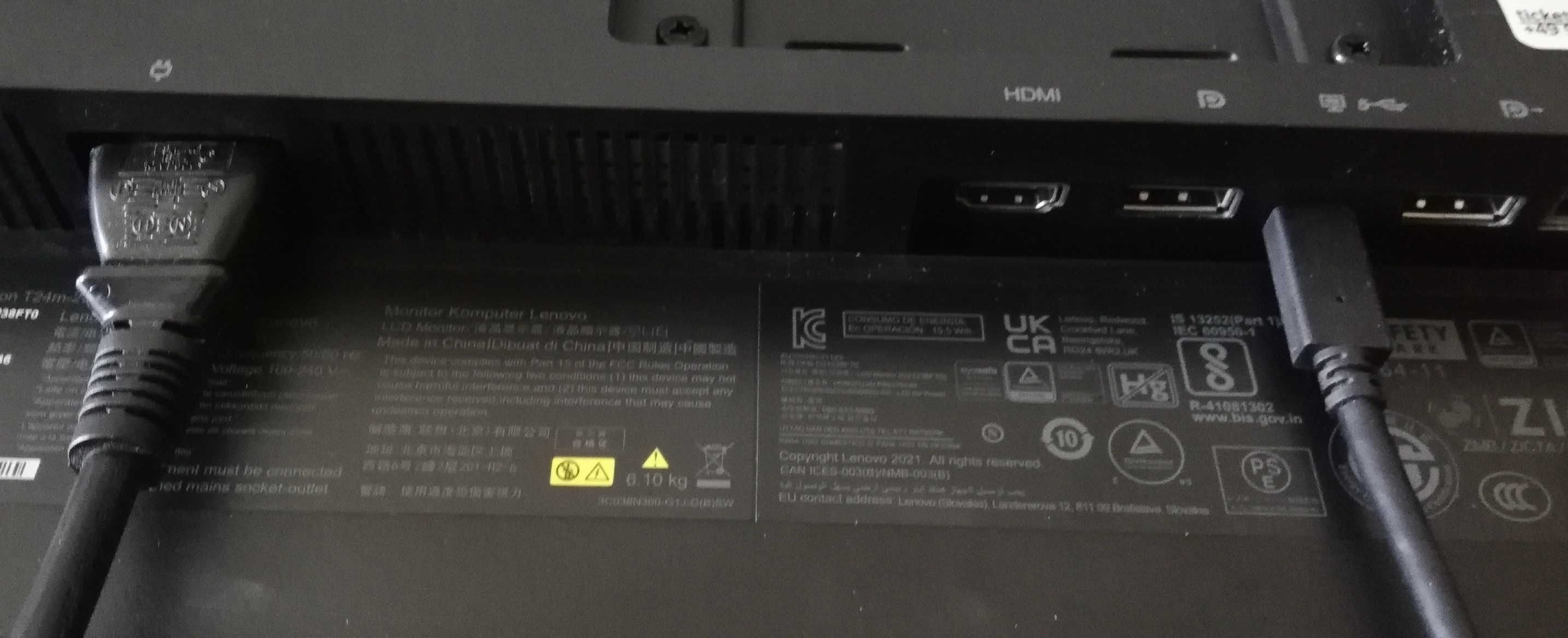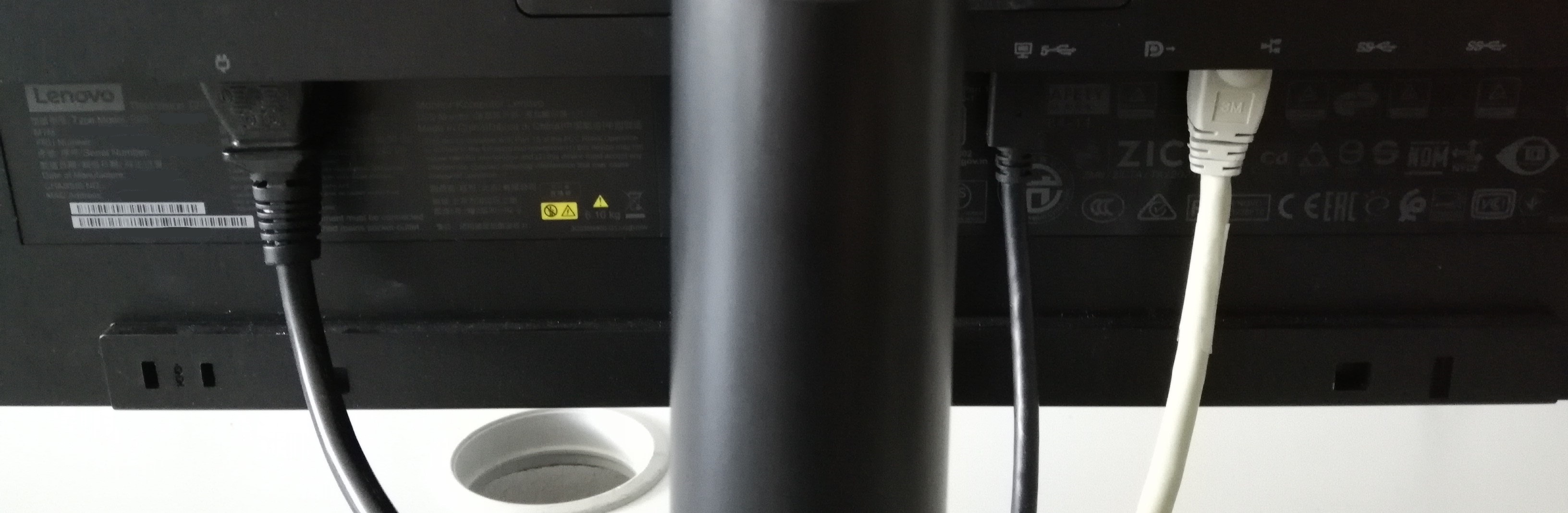 - Die beiden Kabel in die entsprechenden Buchsen am Monitor anschließen und mit der Stromversorgung beziehungsweise dem Notebook verbinden.