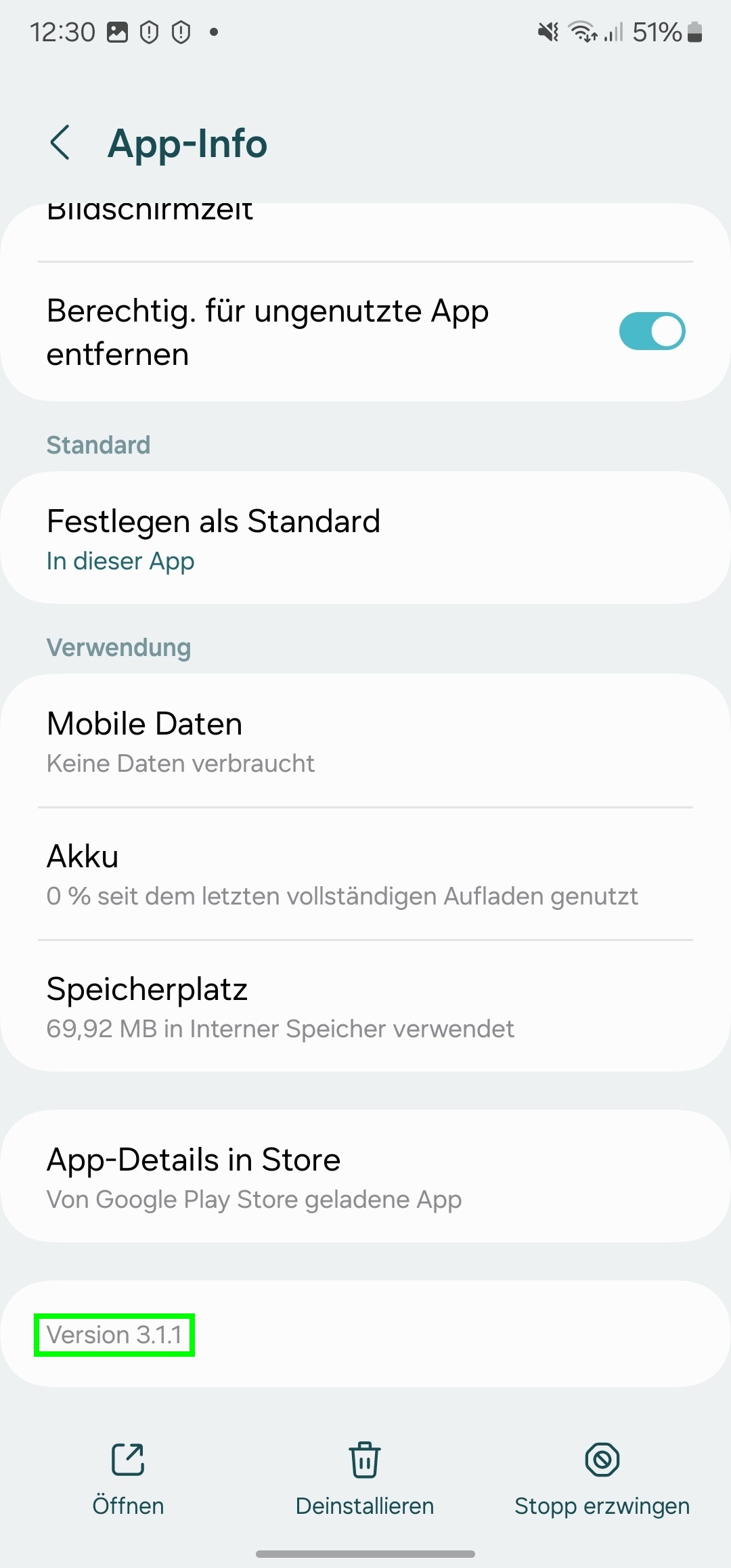 Dort nun etwas runterscrollen. Nun kann man hier die aktuell installierte Versionsnummer sehen