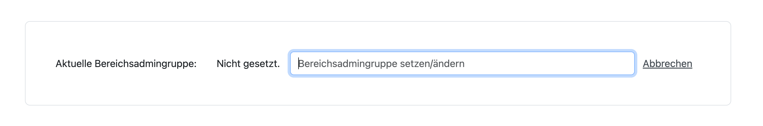 Über den Menüpunkt Einstellungen > Organisation können Sie nun unter "Aktuelle Bereichsadmingruppe" eine frei wählbare Gruppe aus Ihrer Organisation setzen.