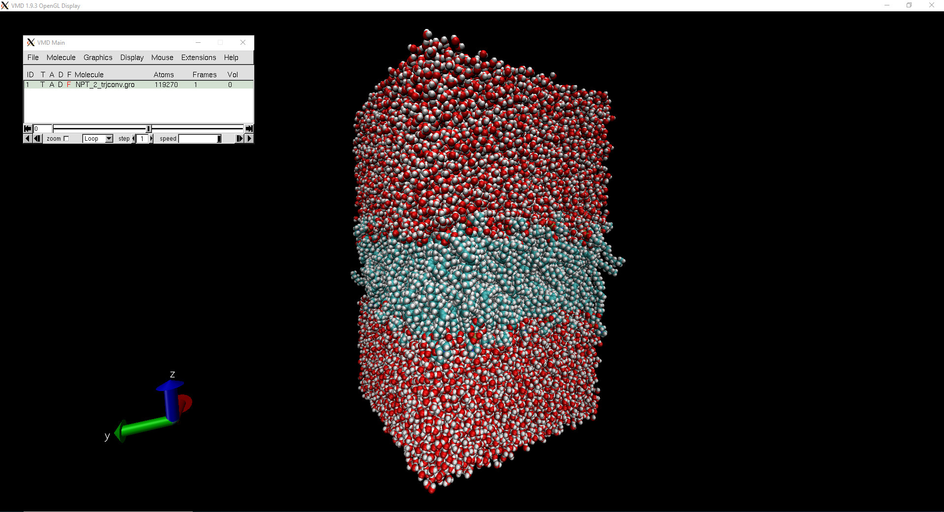 Visual Molecular Dynamics (VMD) is a molecular graphics program designed for the interactive visualization and analysis of biopolymers such as proteins, nucleic acids, lipids, and membranes. It is developed and freely distributed (for academic use) by the Theoretical and Computational Biophysics Group at the University of Illinois at Urbana-Champaign. For more details, please consult the VMD Home page.