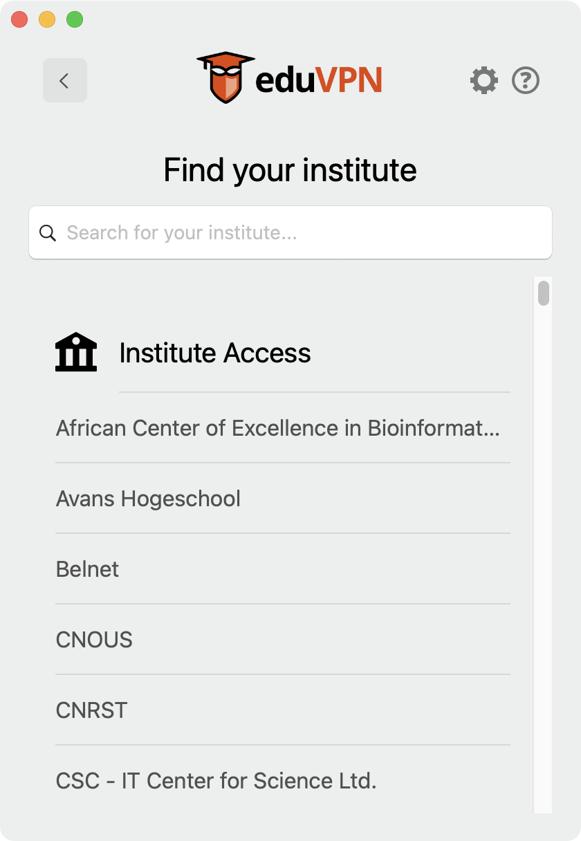 Falls Sie den Client bei gemanagten Macs über den Self-Service schon vorinstalliert haben, gehen Sie bitte zur Auswahl der Institution unten auf der Seite: