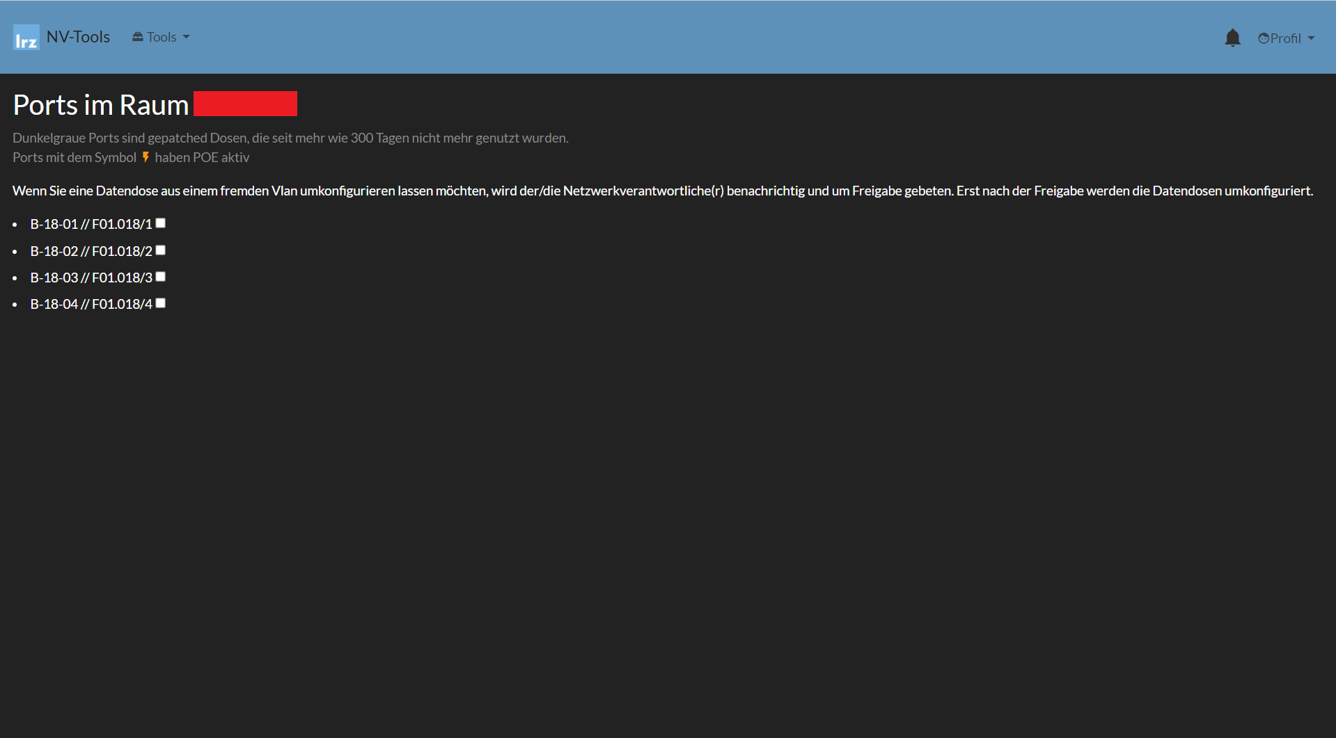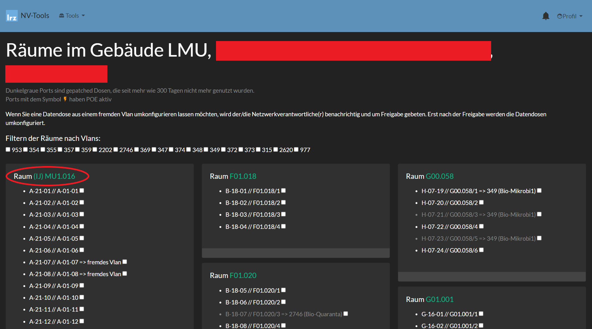 Nachfolgend wird Schritt-für-Schritt illustriert, wie man sich die Portbelegungen in den eigenen Räumen anschauen kann.